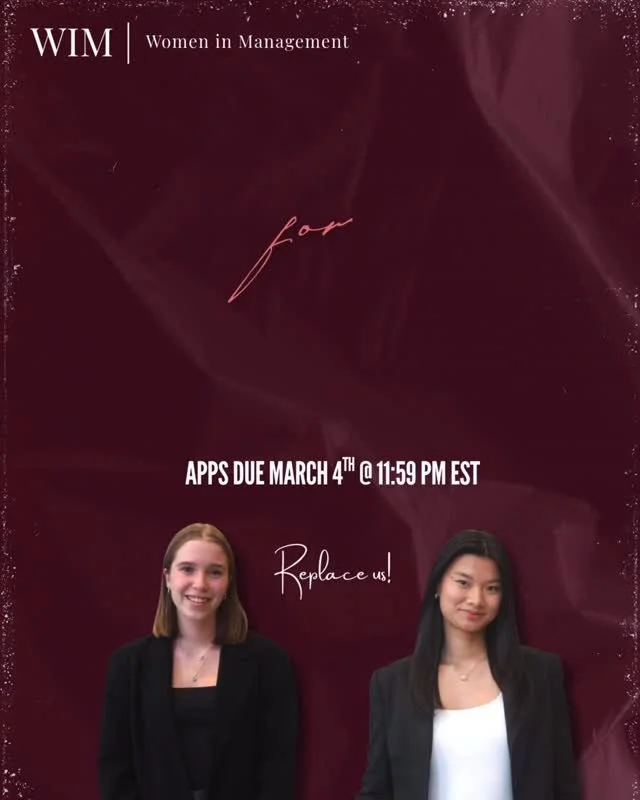 Ivey's Women in Management (WIM) club is a student-led organization dedicated to supporting the development of young, female professionals through relationship building, knowledge sharing, and inspirational drive. Since its establishment in 2010, WIM has empowered female leaders at Ivey; WIM educates women about the diverse career opportunities and inspires them to pursue new, challenging career paths. Our conference, events, mentorship program, and corporate partnerships provide students with exceptional learning opportunities and support as they begin their journeys down their career paths.